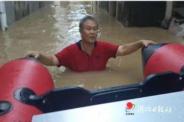 7日下午4时博铺街道水清社区水已浸到胸口,社区干群与时间赛跑合力转移群众。