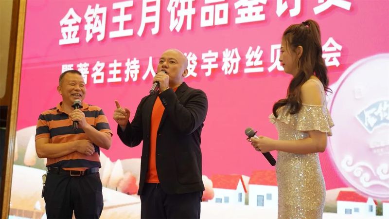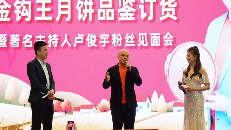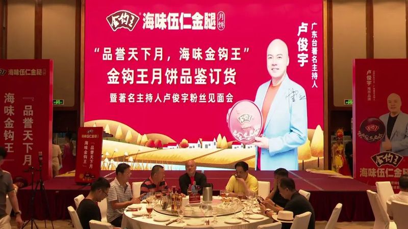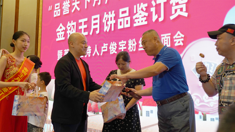 品鉴会现场,随着一段宣传片视频播放后,在主持人的热烈邀请下,“金钩王月饼”形象代言人卢俊宇先生惊喜亮相,瞬间引爆现场,获得了观众热烈的掌声与欢呼。