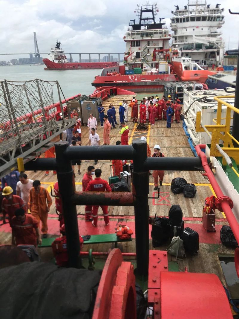 在日前防御“木兰”台风的工作中,中海油服船舶湛江作业公司共计出动13艘三用工作船,安全撤离海上作业人员1334人。随着台风已过、风雨已停,该公司又紧张组织开展返岗工作,安排撤离的作业人员返回海上平台,投身海上油气田的复工复产工作。