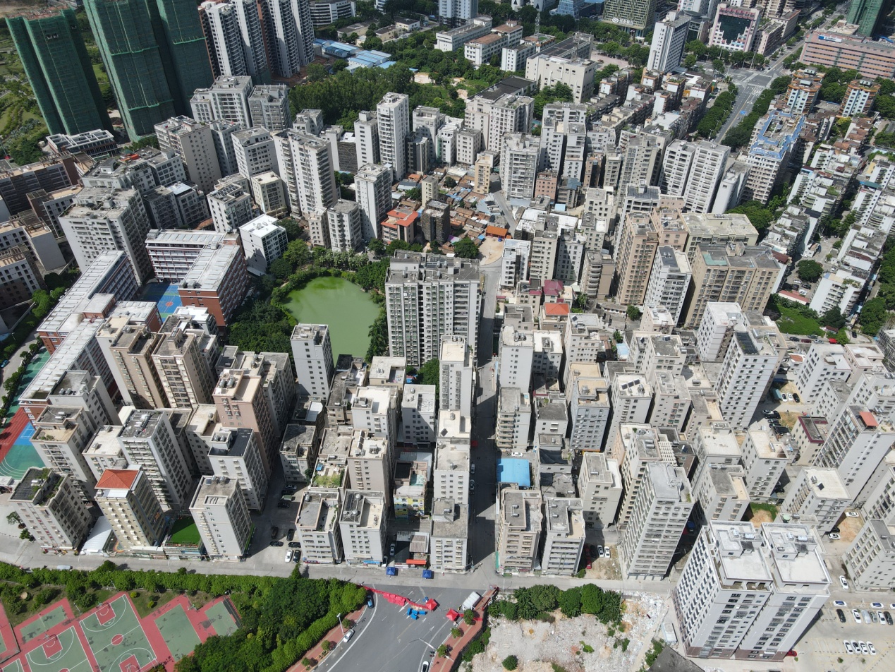 无人机在霞山管控区城市美林小区巡逻时实拍画面