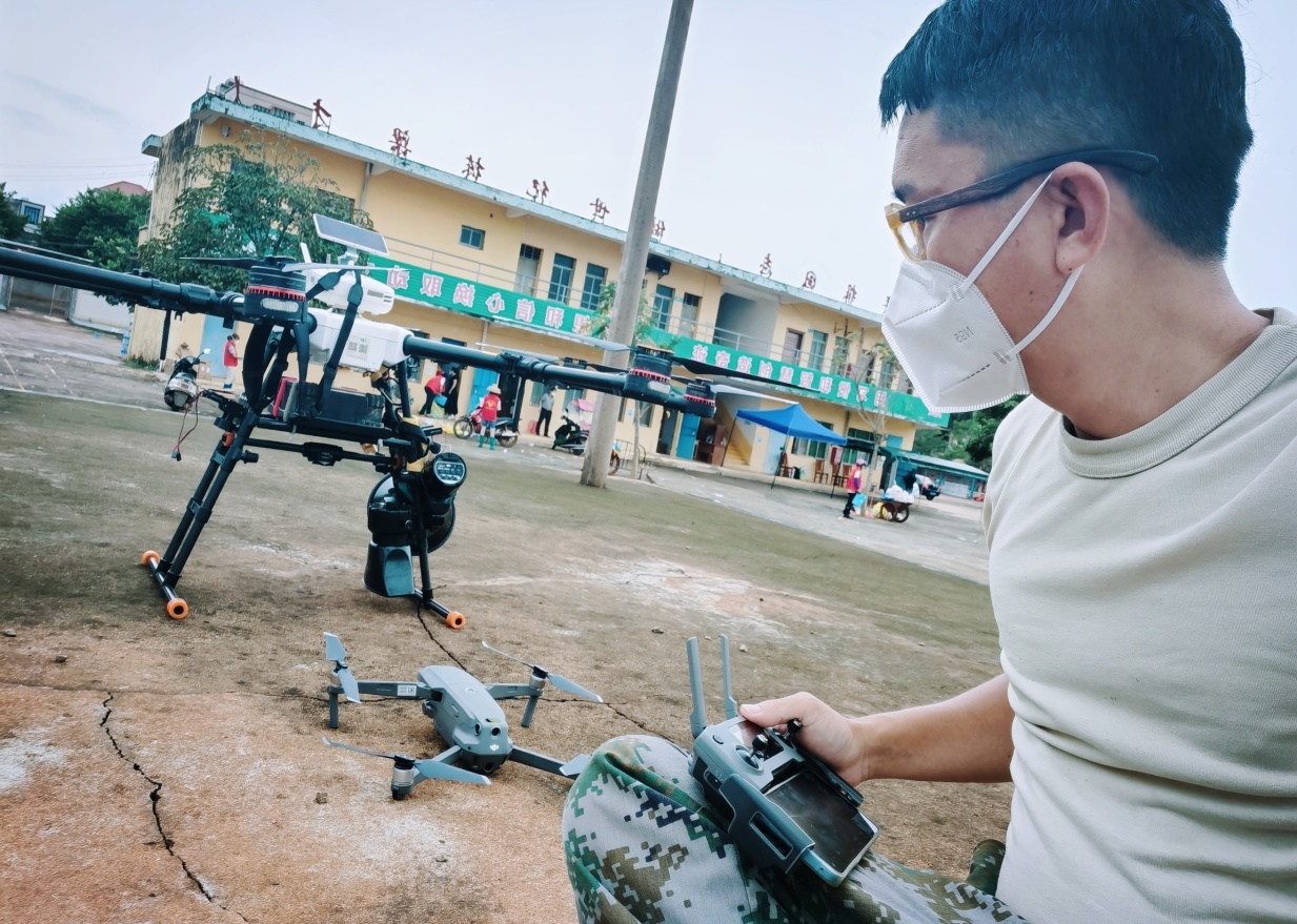 哪里有疫情,那里就有霞山区无人机应急队的身影。湛江市0805本地疫情发生后,根据全市疫情防控工作部署,霞山区人武部应急连无人机排派出陈振晓科技教育工作室成员江华基及梁志兵驰援雷州市北和镇。
