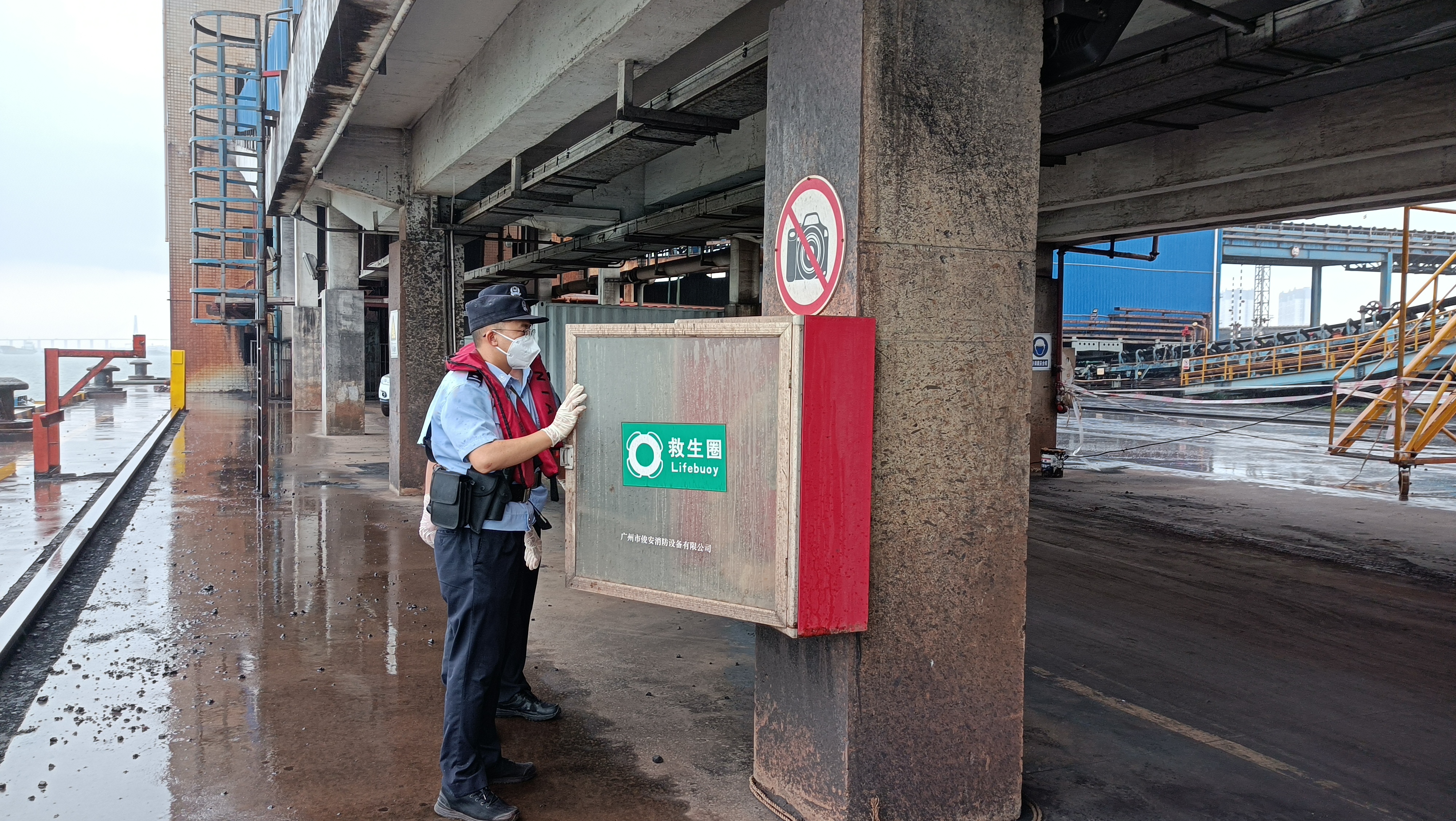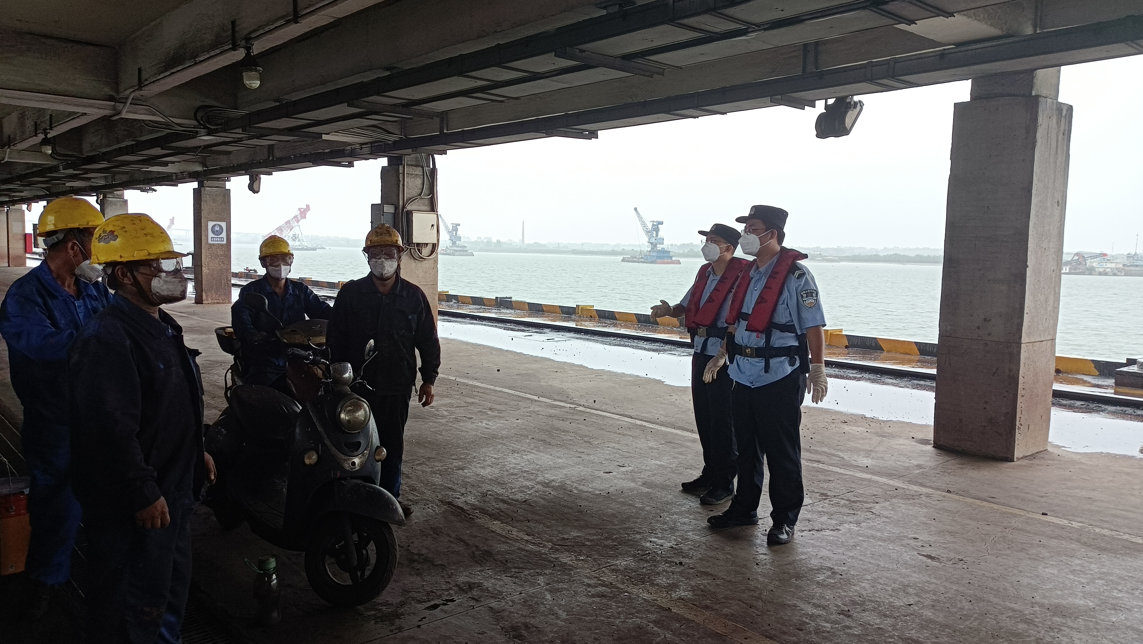 该站加强与口岸联检单位沟通联系,及时了解船舶动态变更情况,并通过手机工作群实时向企业、码头工人发送台风预警信息和安全提示。同时,该站组织民警对霞山港、东海岛、调顺岛、雷州大唐电厂码头等各执勤点的排水系统、消防救援设施设备、码头水电线路、应急防汛沙袋等防台物资开展安全巡检,并深入集装箱堆场、船舶停靠点等重点区域进行安全隐患排查,对集装箱重点部位进行加固,帮助码头企业做好防台抗汛工作。