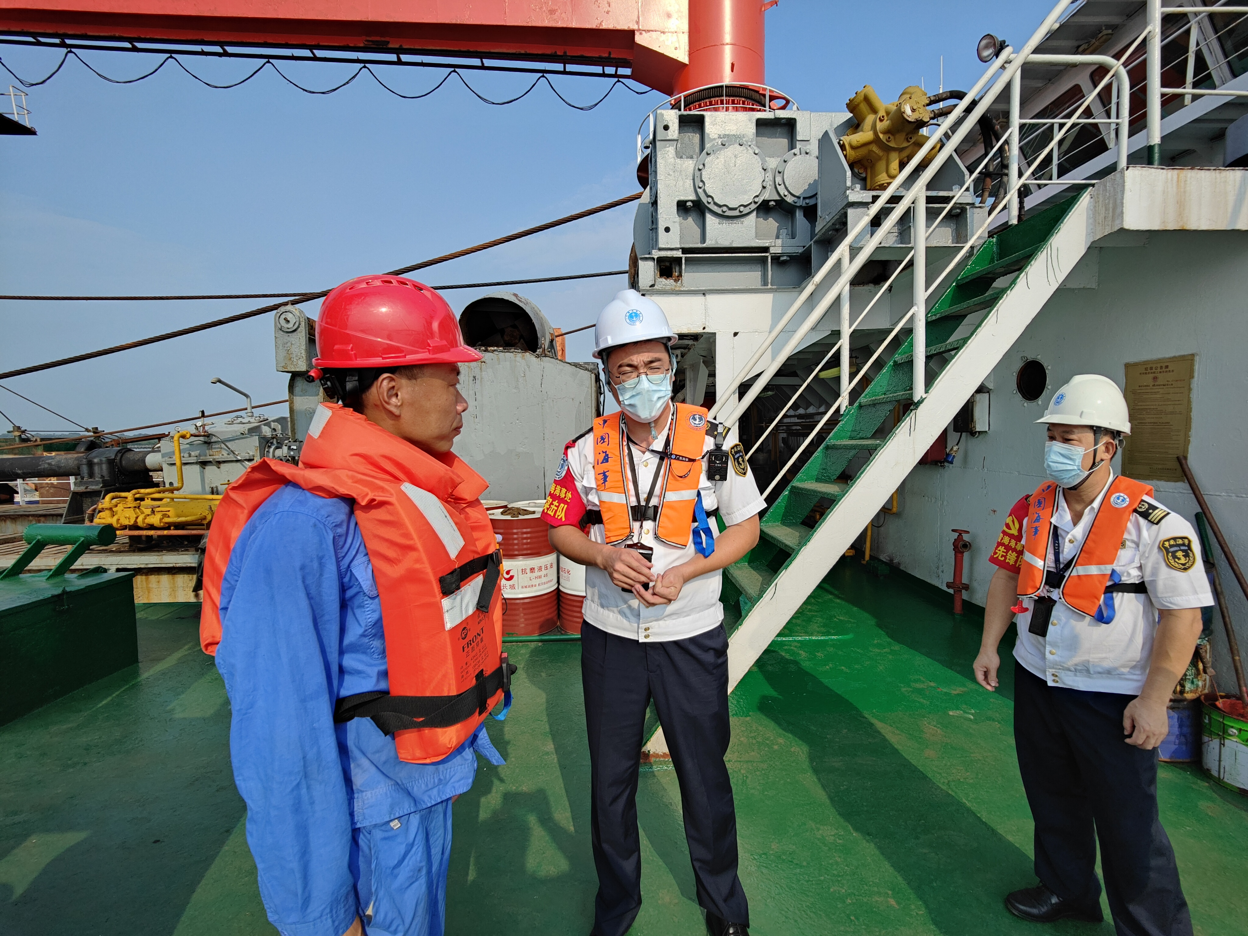 同一天,东海岛海事处加强海上巡查,对巴斯夫施工区施工船舶“一对一”告知湛江港最新防风指令,督促船方加强相关设备自查,要求无动力施工船尽早撤离全部人员,其它施工船舶撤离无关人员。霞山海事处开展水上巡航检查,督促相关船舶落实防风措施。