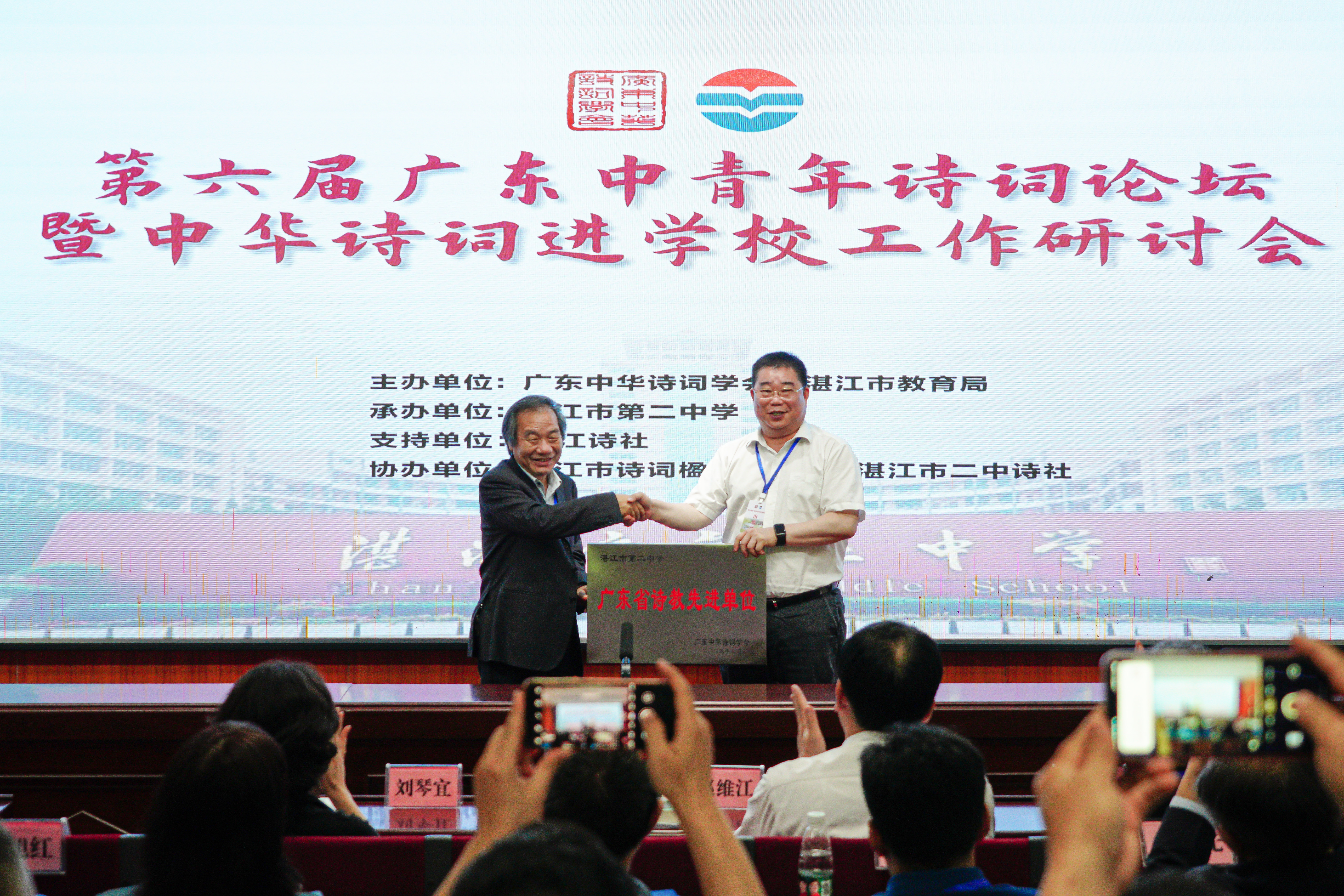 会上,广东中华诗词学会为获得“广东省诗教先进单位”称号的湛江市第二中学授牌。