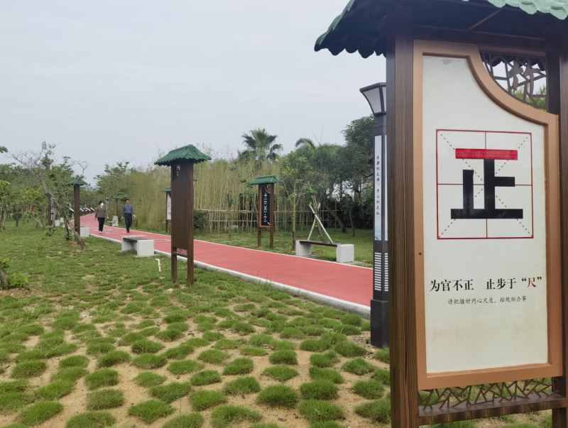 沿着整洁的路径穿行公园内,廉政“清风”扑面而来:廉史长廊、廉心广场、八德亭、警示园、建设之路、法治之路、楷模广场、迷途园、明志园等景观错落有致,步步成景。一条条耳熟能详的反腐金句、一幅幅图文并茂的廉政典故、一面面栩栩如生的廉政人物壁刻、一个个警醒世人的典型案例让人眼前一亮,得到精神洗礼,成为市民学习、休闲运动的好去处、打卡地。