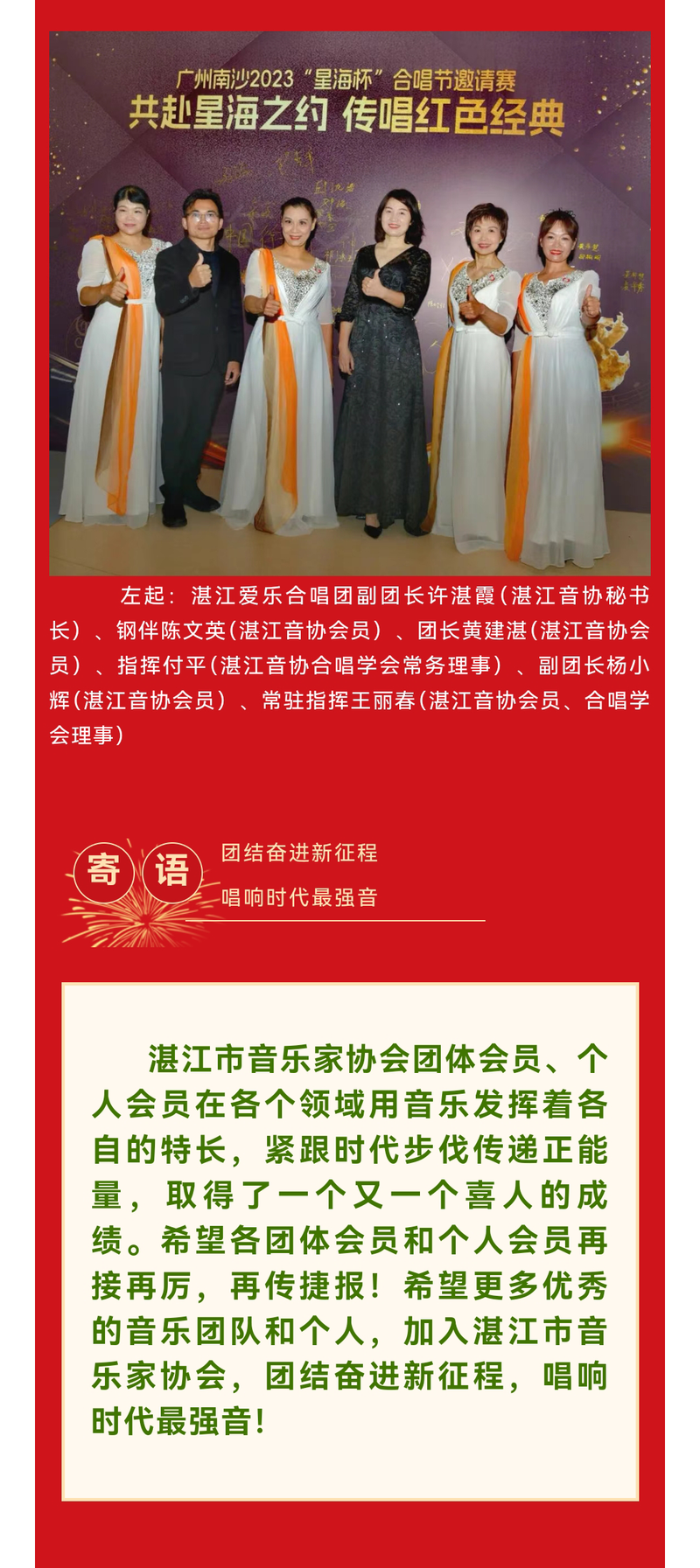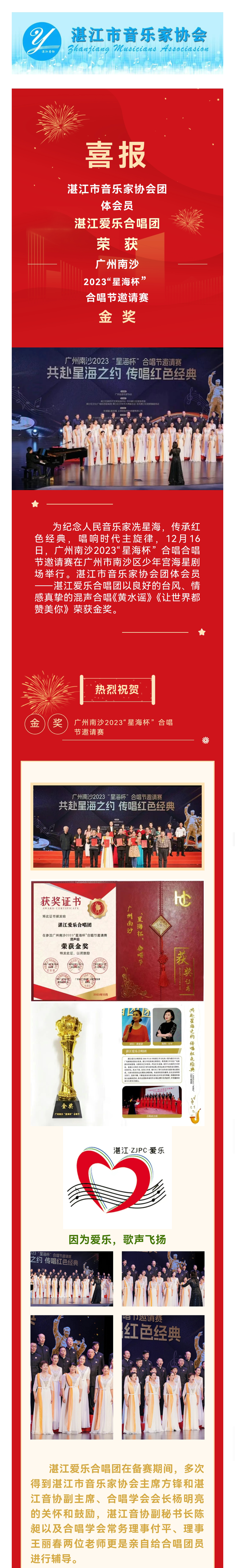 【喜讯】湛江市音乐家协会团体会员——湛江爱乐合唱团荣获广州南沙2023“星海杯”合唱节邀请赛金奖