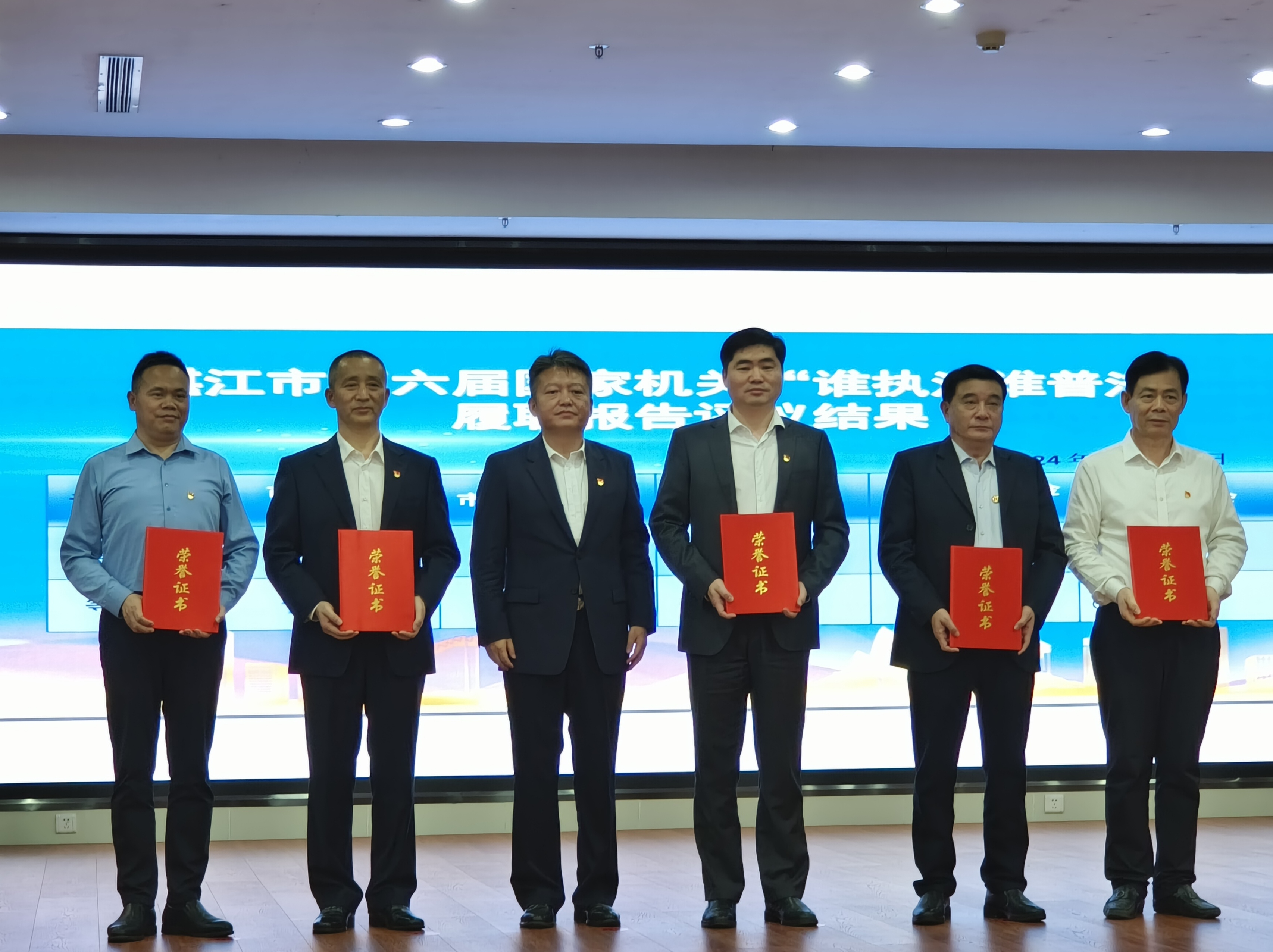 3月22日下午,市委依法治市办、市司法局、市普法办联合开展第六届国家机关“谁执法谁普法”履职报告评议活动,对市发展和改革局、市退役军人事务局、市自然资源局、市住房公积金管理中心和市总工会等5个单位落实普法责任制情况进行评议。进一步落实“八五”普法规划和“谁执法谁普法”责任制,全面压实国家机关普法主体责任,为湛江高质量发展保驾护航。