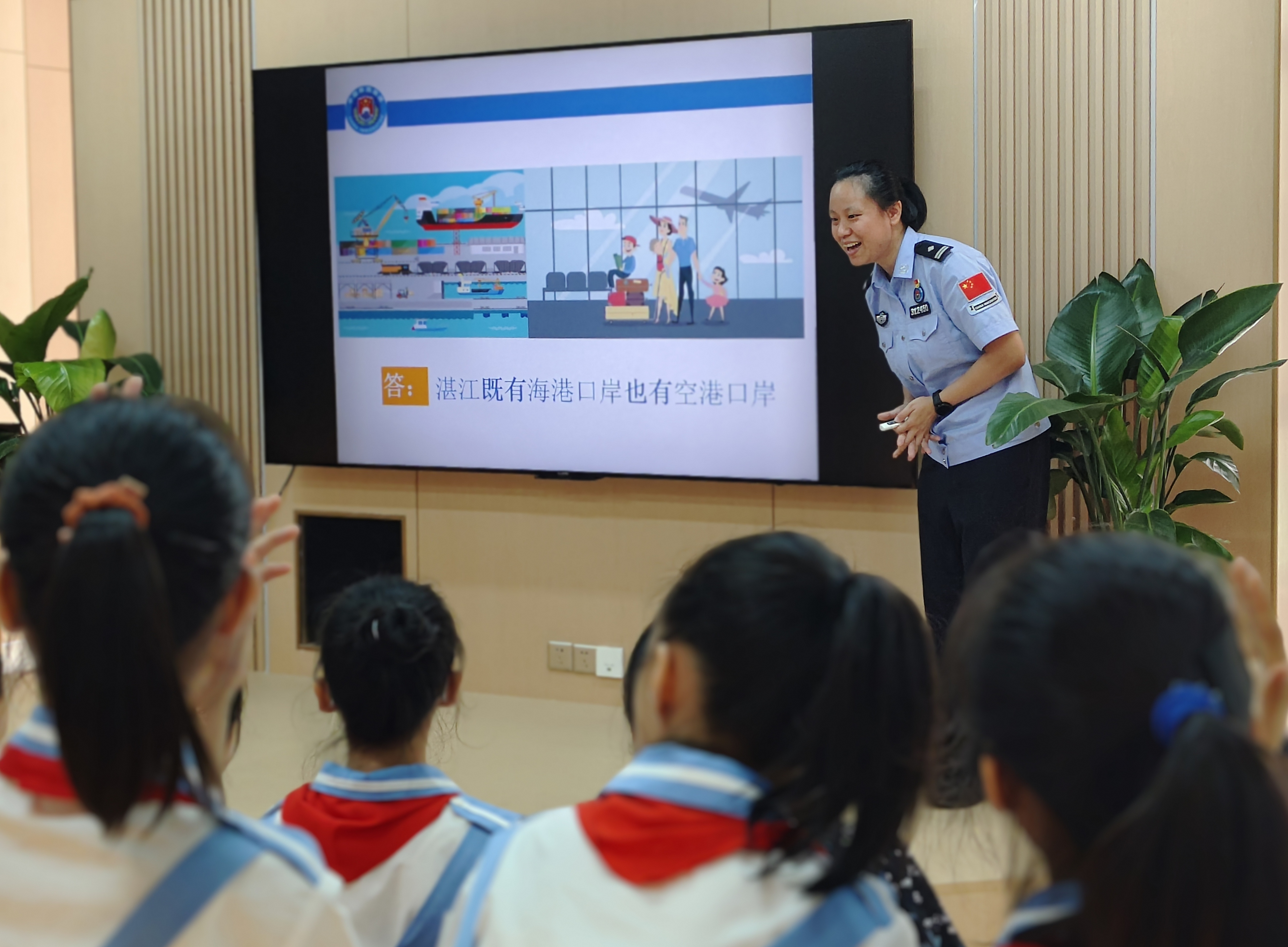 5月30日,湛江边检站开展“少年心向党共筑警营梦”警营开放日活动,来自湛江市第二十小学的20余名师生代表走进警营,和民警面对面交流,近距离体验移民管理警察的工作日常。