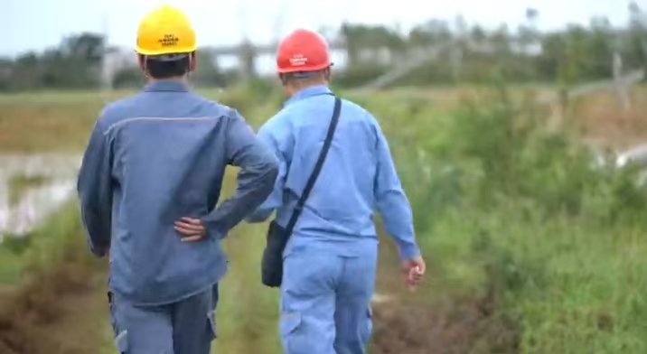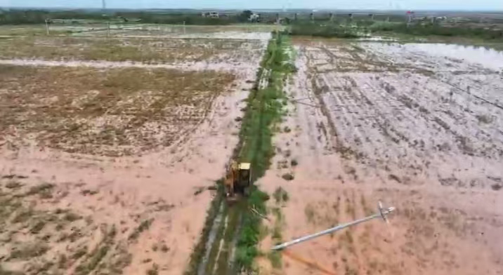 今天下午主要的工作任务是这条10千伏线路的修复,这条线路影响周围两条村大概几百户用电,由于有好多条电杆被台风吹倒,电杆又在水田中,抢修难度比较大
