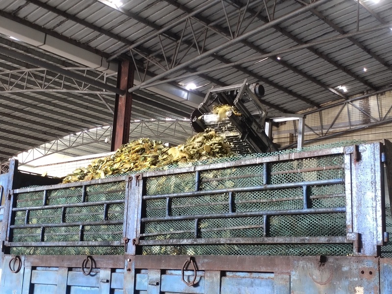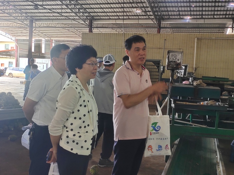 当天上午,调研组首站走进湛江菠萝世家实业有限公司,沿着菠萝清洗、去皮、切片、榨汁至成品的全生产流程细致考察,重点询问菠萝皮、菠萝渣、菠萝叶等副产物的产生量、当前处理方式,精准掌握废弃物源头情况,为后续破解难题积累一手资料。