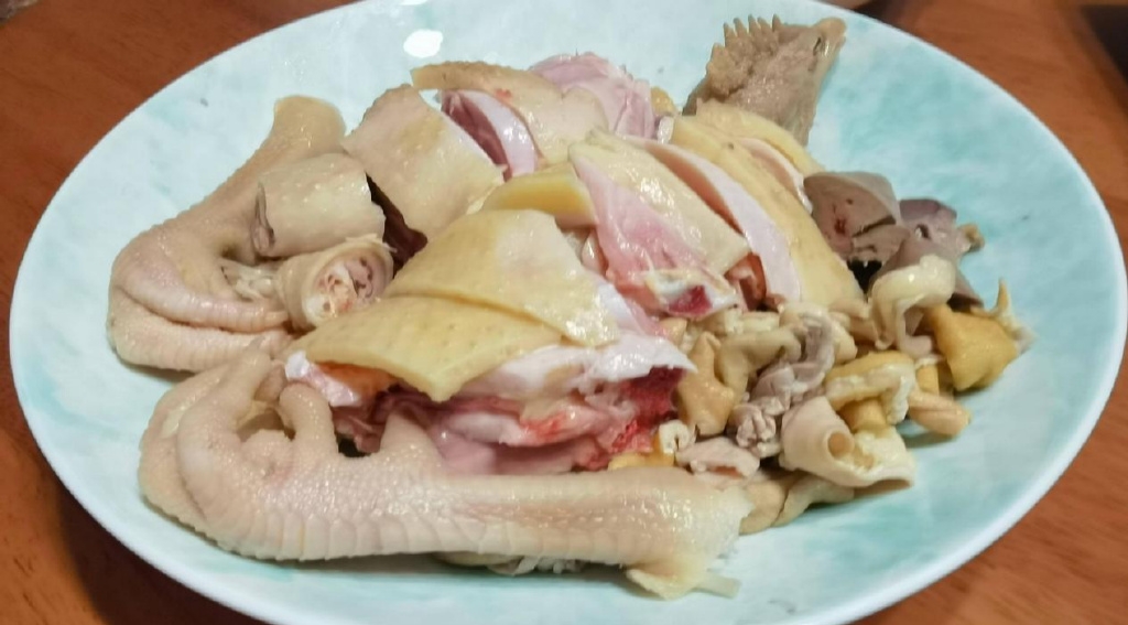湛江鸡与清远麻鸡、惠州胡须鸡并称广东三大名鸡,老广们把湛江鸡排在首位,可见这只鸡的江湖地位。2025年春节我是在湛江过的,有幸获得一只朋友自家养的鸡,说是廉江荔枝林里散养一年左右的阉鸡。鸡很大只,也比较肥壮,净鸡有个5、6斤的样子。