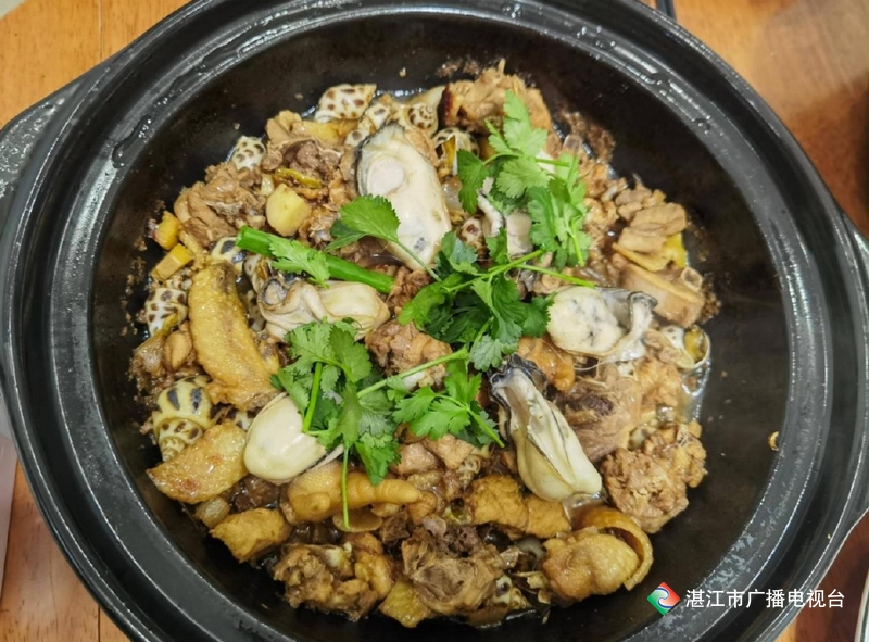 森林公园的瓮鸡店最多,也最出名,腹内有大量以沙姜为主的香料,热食极佳。撕开铝箔和荷叶,热气升腾、香味扑鼻,边边角角有着烟熏火燎的焦香,肉厚处则汁水丰盈、软糯入味。外地人大多不知道,瓮鸡在湛江是很多人的童年打野记忆,也是郊游露营必备。曾经看到本地人用小推车专门去买来砖头大小的泥坯砌窑来瓮鸡。抖音等视频平台上,也经常会有当地的博主直播瓮(窑)鸡的过程——垒土块成窑,挖坑烧柴,待柴已成炭、坑热土炽,上端开口,放入包了一层荷叶、一层铝箔纸的秘制料汁腌过的整鸡,还有一个个包好的土豆、红薯、玉米,然后塌了土窑,2个小时后出品。