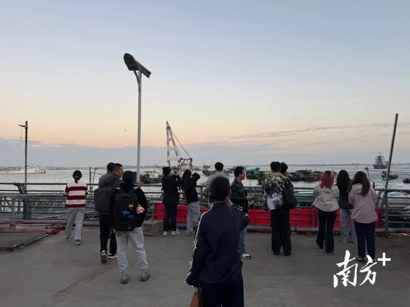 采访团站在岸边拍摄记录,在海风和灯光中感受湛江不同于白天的另一面:既有渔港的安静,也有城市夜晚渐起的生活气息。这一刻,节奏慢了下来,也让大家在短暂停留中,感受到湛江独有的港城风情。