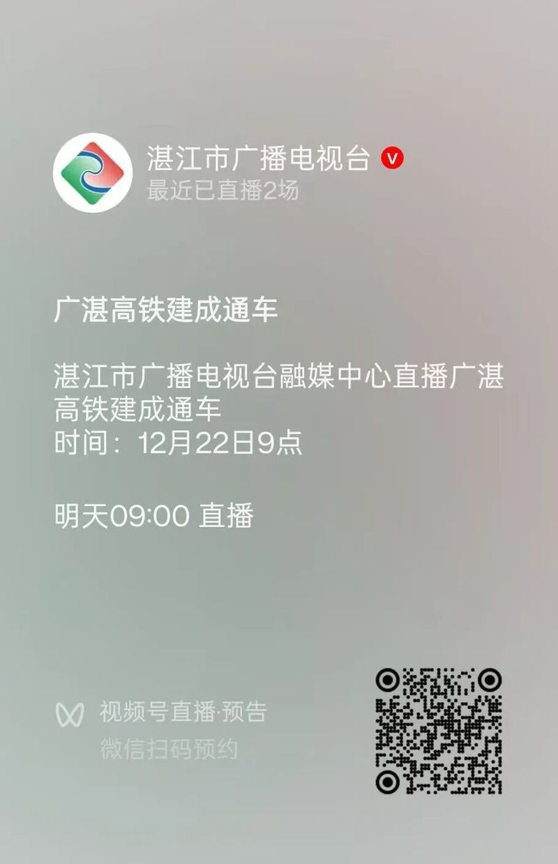 粤西高铁时代重磅启幕!万众期待的广湛高铁将于12月22日正式开通运营,广州白云站至湛江北站最快1小时32分可达,粤港澳大湾区与北部湾城市群的时空距离大幅压缩 !这场改写粤西交通版图的盛事,邀你全程见证!
