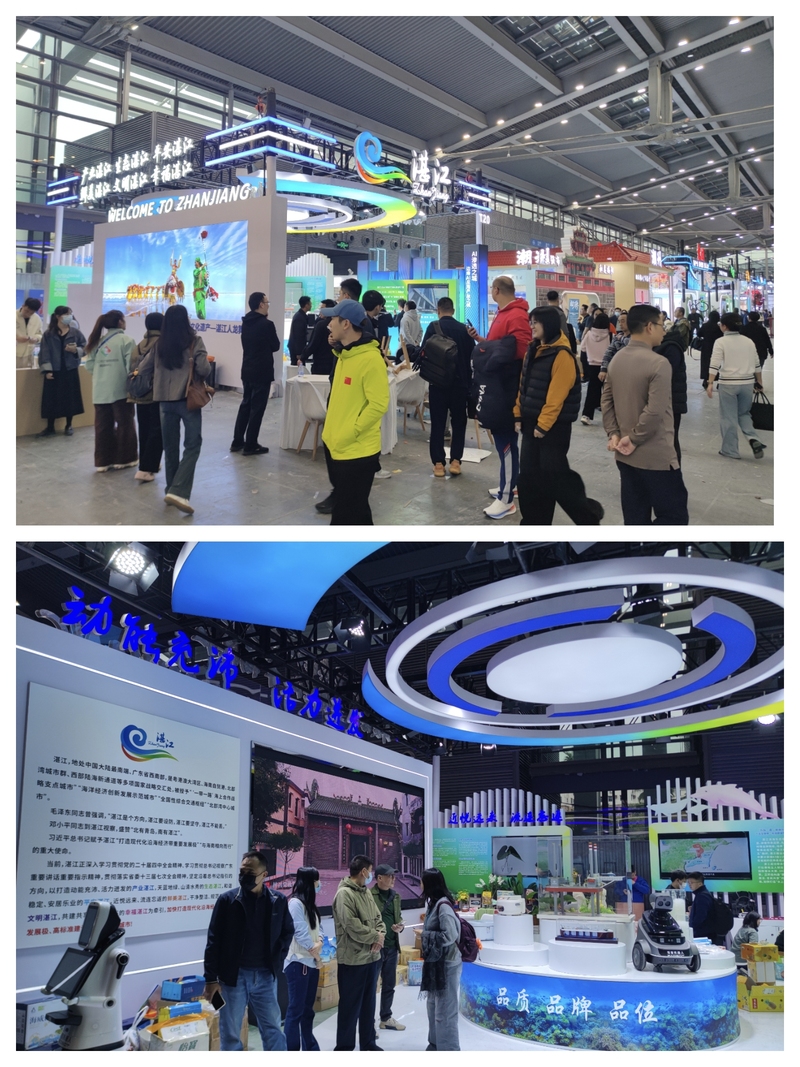 展区特设机器人互动、AI产品展示吸睛,湛江的水产预制菜、特色小家电、红树林生态文创产品也集中亮相,全方位展现湛江本土产业的硬核实力与文化魅力。